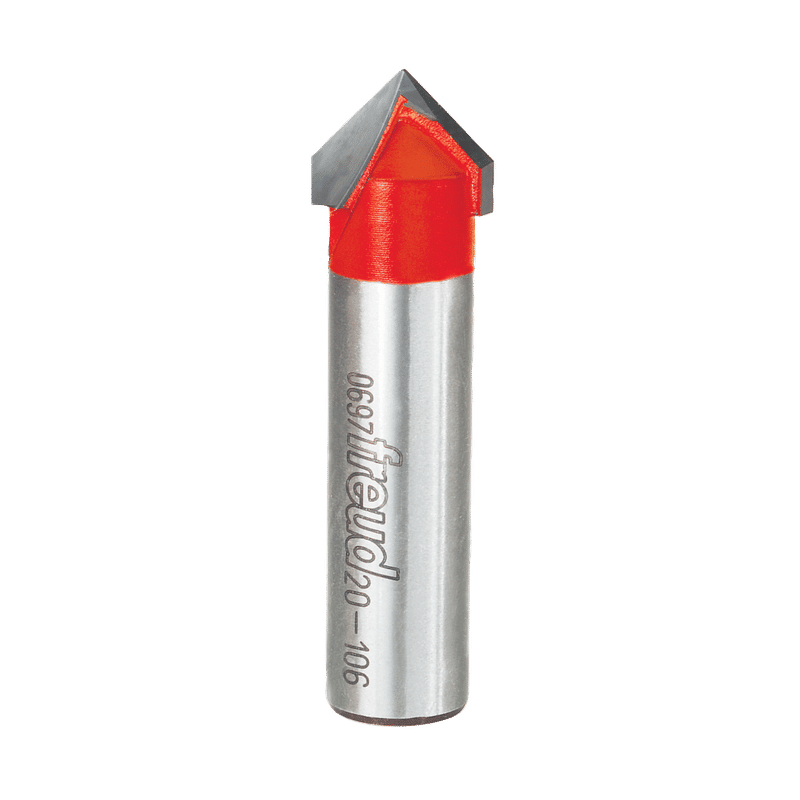 "V" Grooving bits are the perfect choice for making signs, engraving wood plaques, adding decorative accents to furniture or adding visual interest to millwork. Use these versatile bits in hand-held, table-mounted or CNC routers to rout hardwood, softwood, plywood, plastics and composite material. Please note that item 20-502 includes a top bearing to follow your templates or fixtures. Ideal For:Fluted millwork, signs and veining