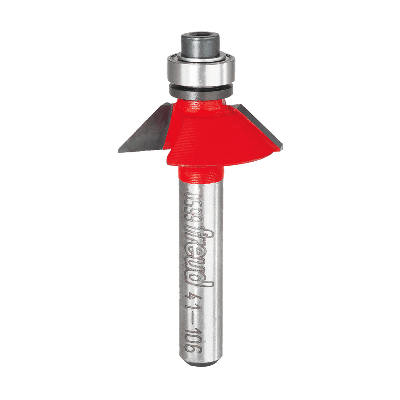 Bevel Trim Bits produce a clean, finished edge on plastic laminates with little or no filing. Choose among bevel angles from 8 degrees to 45 degrees in the 41-series bits, which also include a ball bearing guide. Or choose the solid carbide 66-100 for a 7 degree bevel in a very cost effective tool. Ideal For:Beveled edge on plastic laminates