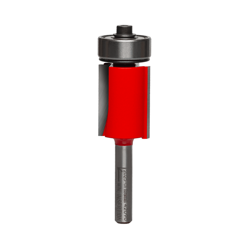 Freud's Flush Trim Bit range includes bits for any trimming application. Use these bits for precise trim work on laminate counter tops, to follow patterns to create or duplicate intricate shapes, or for any task requiring a clean cut-off along a flush edge with a smooth, burn-free cut. Use on hardwood, softwood, plywood, composites and laminates on hand-held or table-mounted routers. Two flute bits provide faster cutting and three flutes yield a superior finish. Ideal For:Trimming laminates & pattern routing