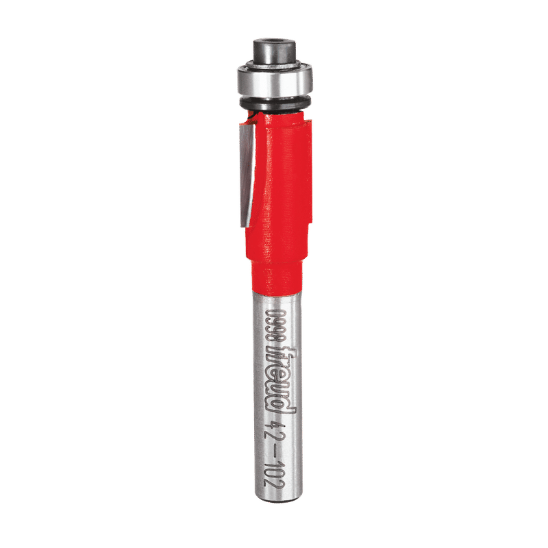 Freud's Flush Trim Bit range includes bits for any trimming application. Use these bits for precise trim work on laminate counter tops, to follow patterns to create or duplicate intricate shapes, or for any task requiring a clean cut-off along a flush edge with a smooth, burn-free cut. Use on hardwood, softwood, plywood, composites and laminates on hand-held or table-mounted routers. Two flute bits provide faster cutting and three flutes yield a superior finish. Ideal For:Trimming laminates & pattern routing