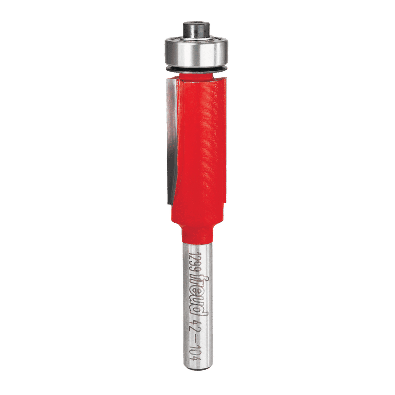 Freud's Flush Trim Bit range includes bits for any trimming application. Use these bits for precise trim work on laminate counter tops, to follow patterns to create or duplicate intricate shapes, or for any task requiring a clean cut-off along a flush edge with a smooth, burn-free cut. Use on hardwood, softwood, plywood, composites and laminates on hand-held or table-mounted routers. Two flute bits provide faster cutting and three flutes yield a superior finish. Ideal For:Trimming laminates & pattern routing