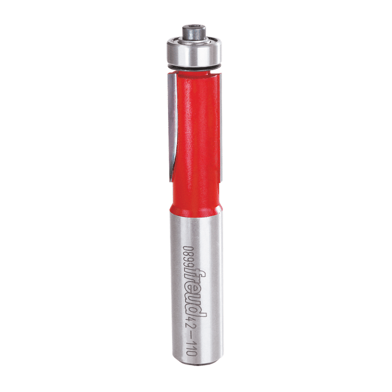Freud's Flush Trim Bit range includes bits for any trimming application. Use these bits for precise trim work on laminate counter tops, to follow patterns to create or duplicate intricate shapes, or for any task requiring a clean cut-off along a flush edge with a smooth, burn-free cut. Use on hardwood, softwood, plywood, composites and laminates on hand-held or table-mounted routers. Two flute bits provide faster cutting and three flutes yield a superior finish. Ideal For:Trimming laminates & pattern routing