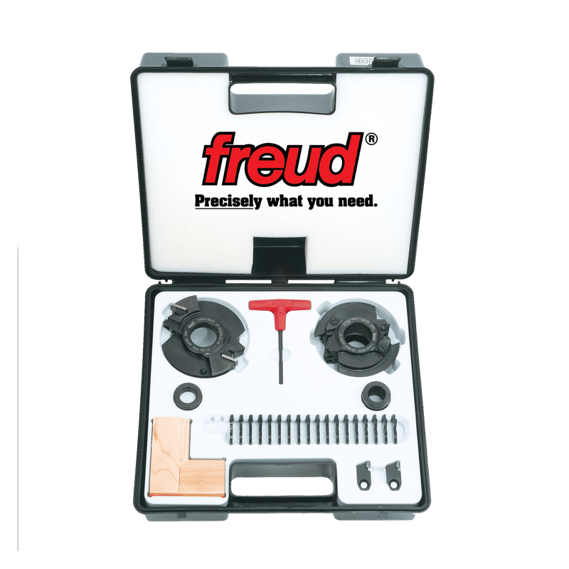 Freud's revolutionary system for making cabinet doors combines the flexibility of standard insert tooling with the performance of resharpenable TiCo™ Hi-Density Carbide Knives. This gives cabinetmakers the ability to offer over 18 profiles of rail and stiles for cabinet doors at a fraction of the cost of fixed knife cutters. These cutters are packed with special features like: eased panel slot edges to prevent splintering and improve finishing, zero down time to switch from the moulding cut to the cope cut with matched reverse sets, and profiles that always match even after resharpening. The RS1000 set contains both cutter heads (RS-S, RS-R), groover knives (RS-K), and the glass door and back tenon knife (RS-L). Profile knives can be purchased separately. The RS2000 contains everything in the RS1000, plus nine different pairs of profile knives. Both sets come with a sample of a rail and stile and complete manual for easy setup. Additional heads can be purchased separately. Ideal For:To create over 18 different styles of raised panels for cabinet doors