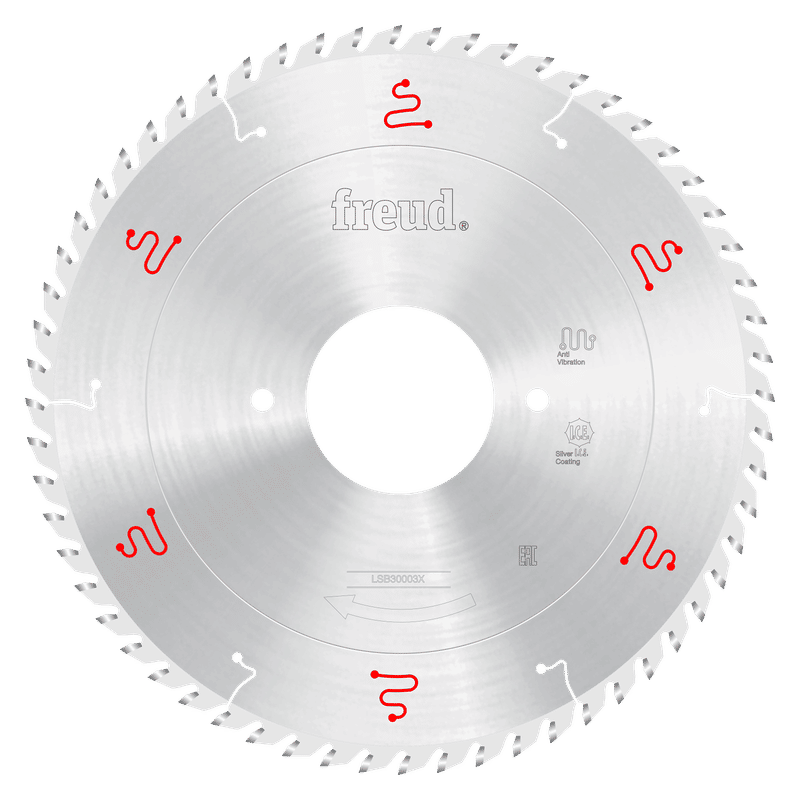 Freud’s innovative X-series of LSB Panel Blades (LSB-X) offers ground-breaking designs to provide superior performance, extremely precise cuts and virtually no-run out for up to 2X the cutting performance and cutting life of standard LSB Panel Blades. Freud’s specially formulated TiCo™ carbide along with Silver I.C.E. (Industrial Cooling Element) coating enables the blade to slice through materials, maximizing the blade’s cutting life and providing a superior quality finish. The Ultimate Precision Grinding Process provides the highest possible tolerance for precise, accurate cuts while the advanced Anti-Vibration Design combined with unmatched accuracy in saw blade flatness make this the quietest panel saw blade on the market. Ideal For:Wood and wood composites, these blades enable manufacturers to increase efficiency, reduce down time, and lower tooling cost.