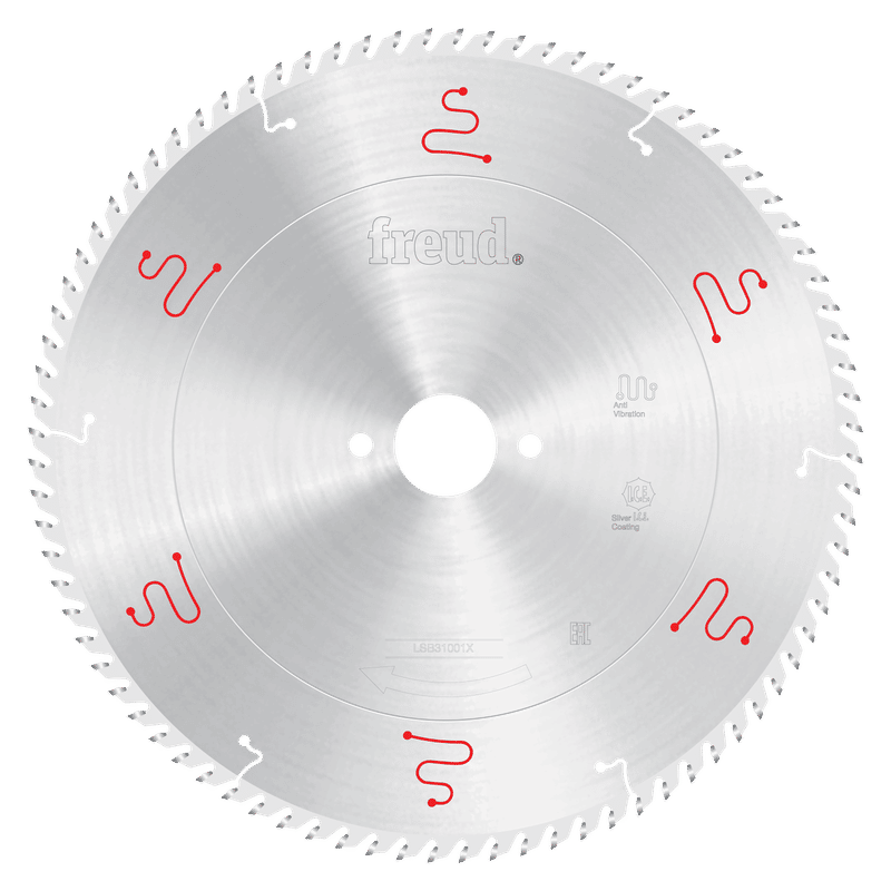 Freud’s innovative X-series of LSB Panel Blades (LSB-X) offers ground-breaking designs to provide superior performance, extremely precise cuts and virtually no-run out for up to 2X the cutting performance and cutting life of standard LSB Panel Blades. Freud’s specially formulated TiCo™ carbide along with Silver I.C.E. (Industrial Cooling Element) coating enables the blade to slice through materials, maximizing the blade’s cutting life and providing a superior quality finish. The Ultimate Precision Grinding Process provides the highest possible tolerance for precise, accurate cuts while the advanced Anti-Vibration Design combined with unmatched accuracy in saw blade flatness make this the quietest panel saw blade on the market. Ideal For:Wood and wood composites, these blades enable manufacturers to increase efficiency, reduce down time, and lower tooling cost.