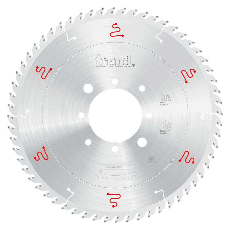 Freud’s innovative X-series of LSB Panel Blades (LSB-X) offers ground-breaking designs to provide superior performance, extremely precise cuts and virtually no-run out for up to 2X the cutting performance and cutting life of standard LSB Panel Blades. Freud’s specially formulated TiCo™ carbide along with Silver I.C.E. (Industrial Cooling Element) coating enables the blade to slice through materials, maximizing the blade’s cutting life and providing a superior quality finish. The Ultimate Precision Grinding Process provides the highest possible tolerance for precise, accurate cuts while the advanced Anti-Vibration Design combined with unmatched accuracy in saw blade flatness make this the quietest panel saw blade on the market. Ideal For:Wood and wood composites, these blades enable manufacturers to increase efficiency, reduce down time, and lower tooling cost.