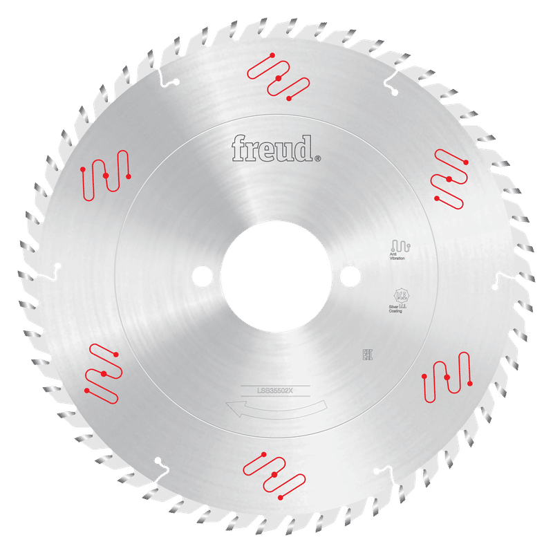 Freud’s innovative X-series of LSB Panel Blades (LSB-X) offers ground-breaking designs to provide superior performance, extremely precise cuts and virtually no-run out for up to 2X the cutting performance and cutting life of standard LSB Panel Blades. Freud’s specially formulated TiCo™ carbide along with Silver I.C.E. (Industrial Cooling Element) coating enables the blade to slice through materials, maximizing the blade’s cutting life and providing a superior quality finish. The Ultimate Precision Grinding Process provides the highest possible tolerance for precise, accurate cuts while the advanced Anti-Vibration Design combined with unmatched accuracy in saw blade flatness make this the quietest panel saw blade on the market. Ideal For:Wood and wood composites, these blades enable manufacturers to increase efficiency, reduce down time, and lower tooling cost.