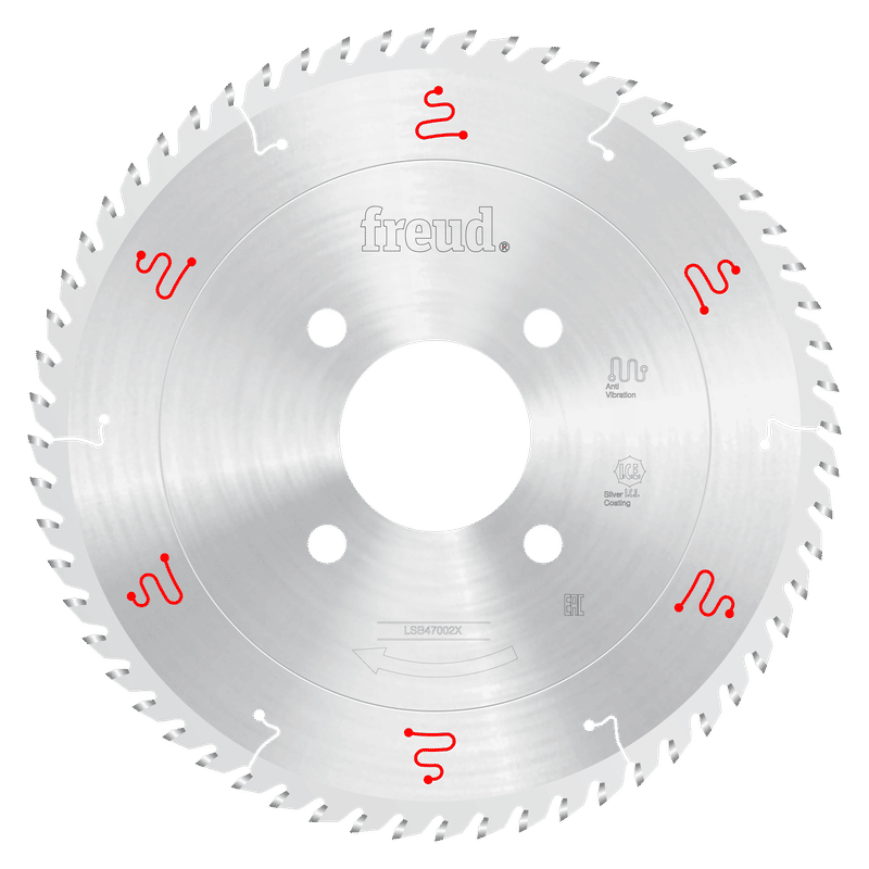Freud’s innovative X-series of LSB Panel Blades (LSB-X) offers ground-breaking designs to provide superior performance, extremely precise cuts and virtually no-run out for up to 2X the cutting performance and cutting life of standard LSB Panel Blades. Freud’s specially formulated TiCo™ carbide along with Silver I.C.E. (Industrial Cooling Element) coating enables the blade to slice through materials, maximizing the blade’s cutting life and providing a superior quality finish. The Ultimate Precision Grinding Process provides the highest possible tolerance for precise, accurate cuts while the advanced Anti-Vibration Design combined with unmatched accuracy in saw blade flatness make this the quietest panel saw blade on the market. Ideal For:Wood and wood composites, these blades enable manufacturers to increase efficiency, reduce down time, and lower tooling cost.