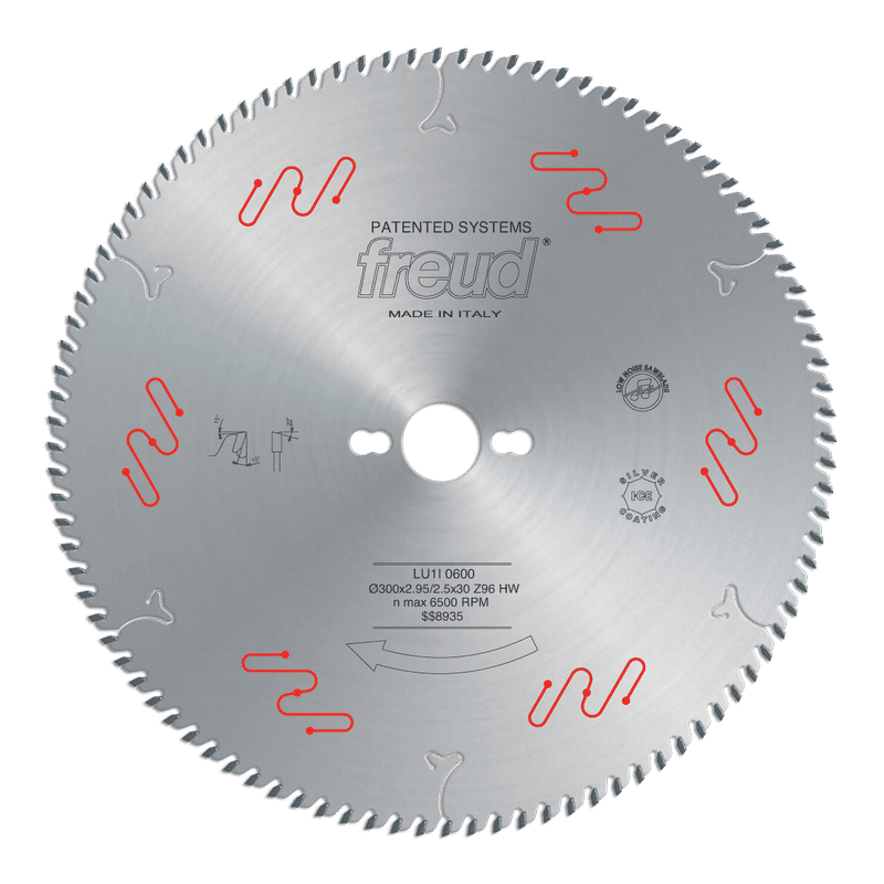 Freud’s range of dedicated saw blades for picture frames and molding saw blades deliver superior finishes in solid wood and man-made materials when in crosscutting and mitering applications. Freud-made TiCo™ Hi-Density Carbide coupled with Freud’s Silver I.C.E (Industrial Cooling Element) [or Perma-SHIELD coating] gives these blades the longest run time of other similar blades available today. Freud’s unique tooth design and anti-vibration reeds, lead to a high precision, exacting cut of frames and moldings, where the items must be coupled to perfectly match, without chipping, even when covered in paint, metallic foil, filler, plaster and other abrasive and fine materials. Ideal For:Crosscutting. Without splintering molds and end trims of previously profiled items, where the items have to be coupled to perfectly match, even if they are covered with paint, chalk and other abrasive and fine materials.