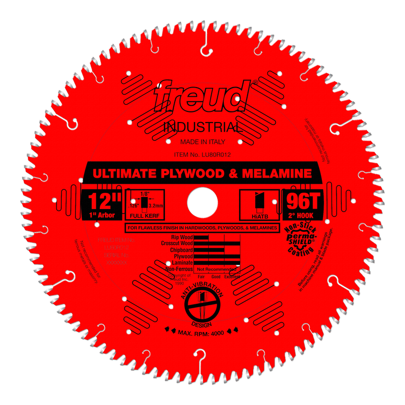 The LU80 saw blade provides flawless, chip free edges in veneered plywoods, fine moldings, melamine, laminates, and crosscuts in solid woods. Ideal For:Flawless Finish In Veneered Plywood, Chip Board, Melamine & Laminate - Depth of cut (1/4" min to 1-5/8" max)