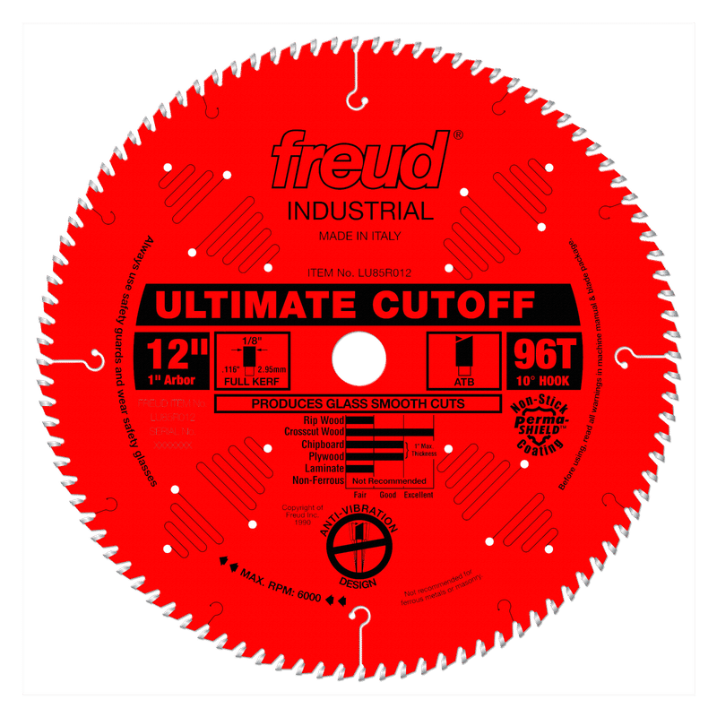 Freud’s range of dedicated saw blades for picture frames and molding saw blades deliver superior finishes in solid wood and man-made materials when in crosscutting and mitering applications. Freud-made TiCo™ Hi-Density Carbide coupled with Freud’s Silver I.C.E (Industrial Cooling Element) [or Perma-SHIELD coating] gives these blades the longest run time of other similar blades available today. Freud’s unique tooth design and anti-vibration reeds, lead to a high precision, exacting cut of frames and moldings, where the items must be coupled to perfectly match, without chipping, even when covered in paint, metallic foil, filler, plaster and other abrasive and fine materials. Ideal For:Ultimate crosscutting blades for glass-smooth finishes when crosscutting hard and soft woods, so no sanding is required. Depth of cut (1/4" min to 1-5/8" max)