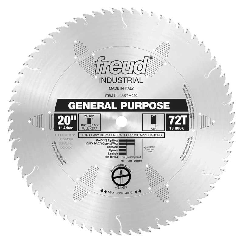 This heavy-duty blade is good for crosscutting thick hardwoods and softwoods and thinner stock materials. The ideal working range is from 3/4" to 3-1/2" thick for crosscutting, and 1/4" to 1" thick for ripping. Thinner or thicker material may be cut, but some loss of surface finish may occur Ideal For:For Heavy-Duty General Purpose Applications. Crosscuts (3/4" to 3-1/2") & Rips (1/4" to 1").