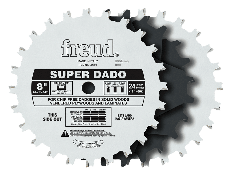 Set includes 2 blades, 6 chippers, and shim set. Ideal For:For cutting slots, grooves, dadoes, and rabbets in softwood or hardwood