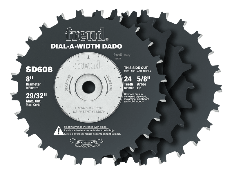Set includes 2 outside blades, 5 chippers and wrench. Ideal For:Cuts clean flat bottom grooves in materials such as veneered plywoods and laminates to solid wood.